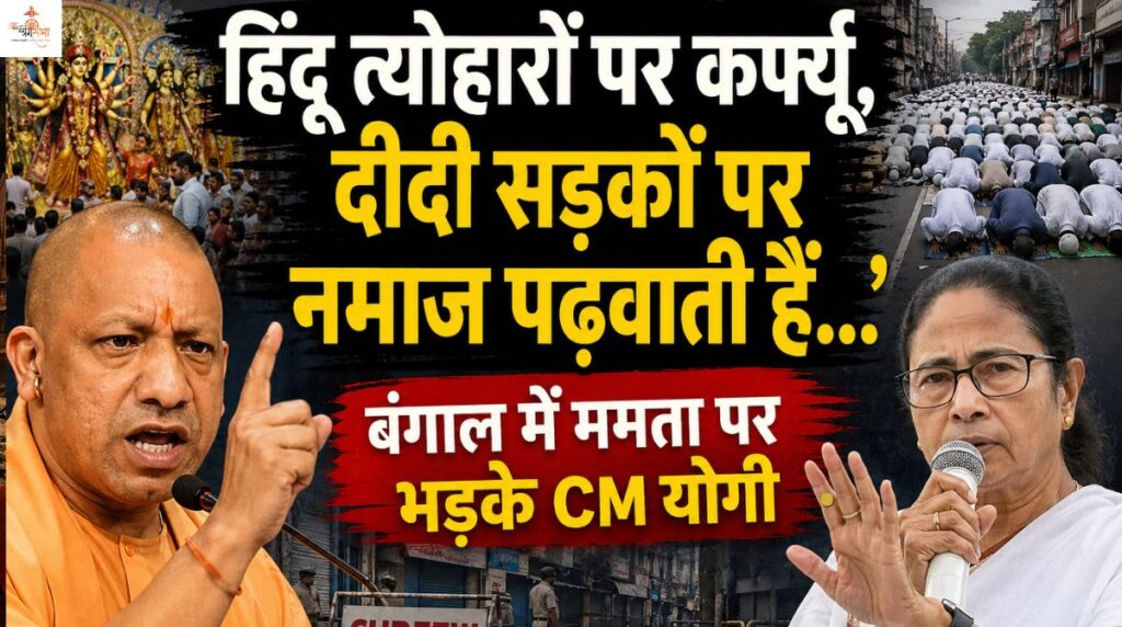 पश्चिम बंगाल की राजनीति एक बार फिर तीखे आरोप-प्रत्यारोप के दौर में पहुंच गई है। उत्तर प्रदेश के मुख्यमंत्री Yogi Adityanath ने बंगाल की मुख्यमंत्री Mamata Banerjee पर गंभीर आरोप लगाते हुए कहा है कि राज्य में हिंदू त्योहारों के दौरान प्रतिबंध लगाए जाते हैं, जबकि सड़कों पर नमाज की खुली अनुमति दी जाती है। योगी आदित्यनाथ का यह बयान ऐसे समय में आया है जब देशभर में धार्मिक स्वतंत्रता और कानून-व्यवस्था को लेकर बहस तेज हो रही है।